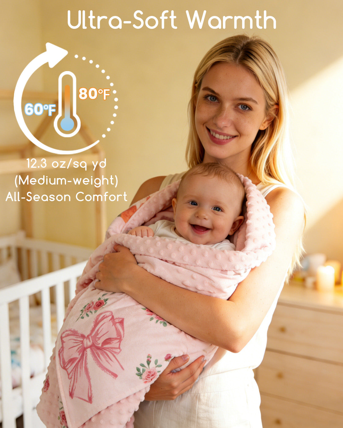 Beavtaens Baby Blanket, Double Layer Dotted Backing, Soft Plush for Newborn, 30"x 40", Pink Bow