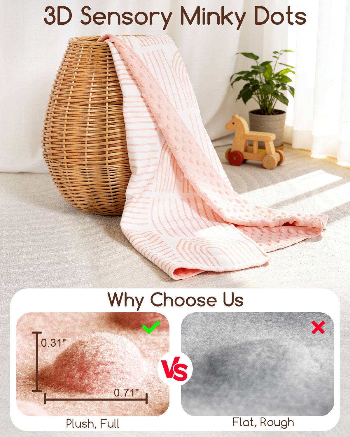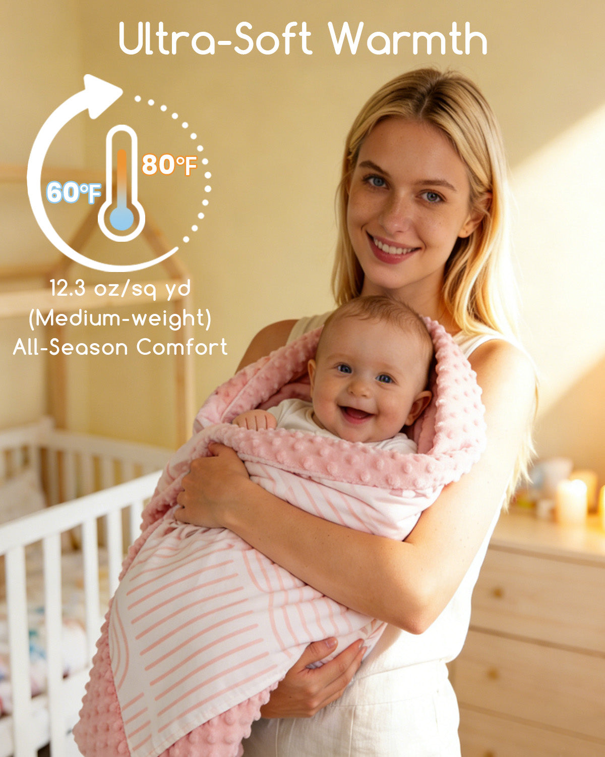 Beavtaens Baby Blanket, Double Layer Dotted Backing, Soft Plush for Newborn, 30"x 40", Yellow Rainbow