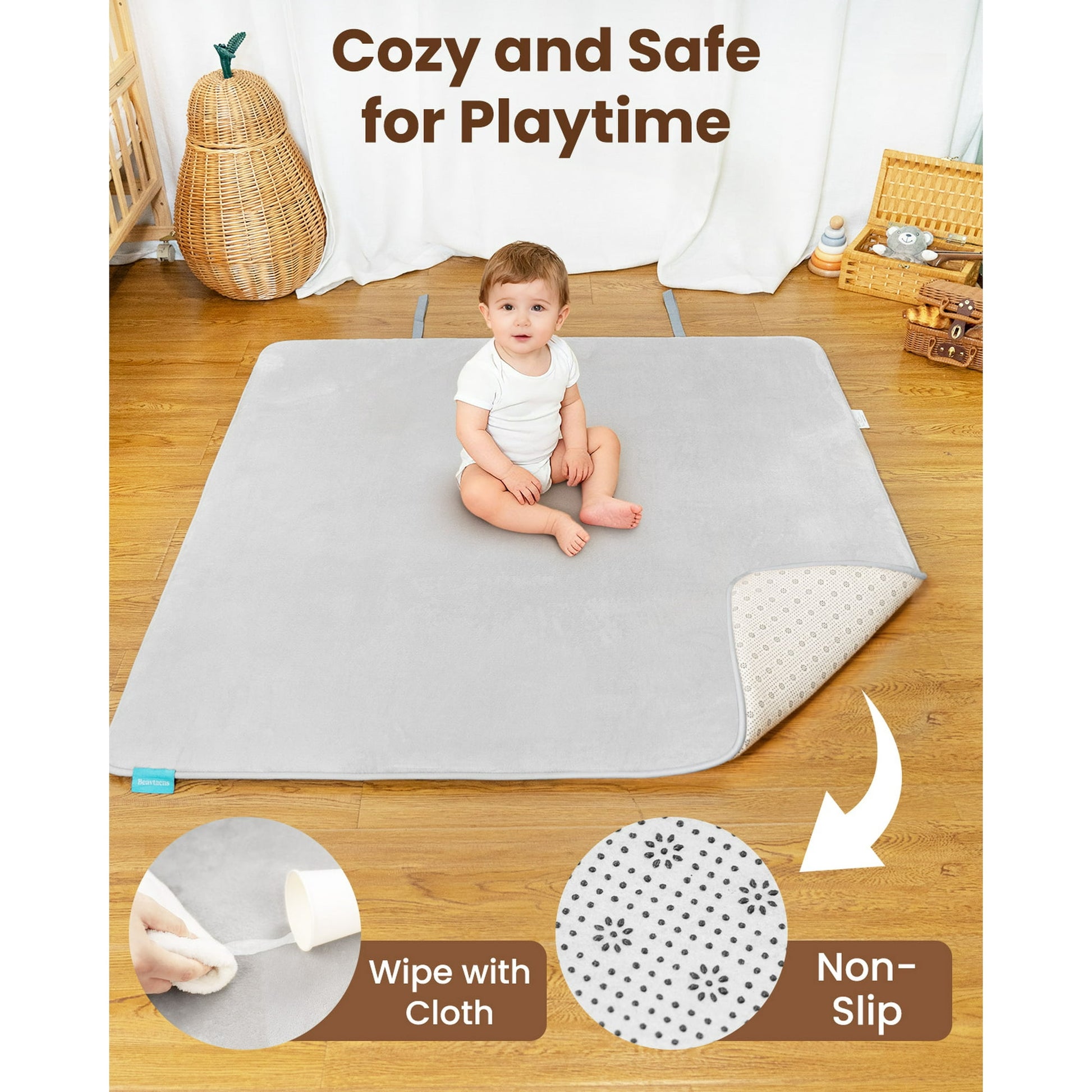 Beavtaens Baby Play Mat for Floor, Foam 50"x50"x1.2" Playpen Mat, Velvet, Thickened, for 0-4 Years (Grey)