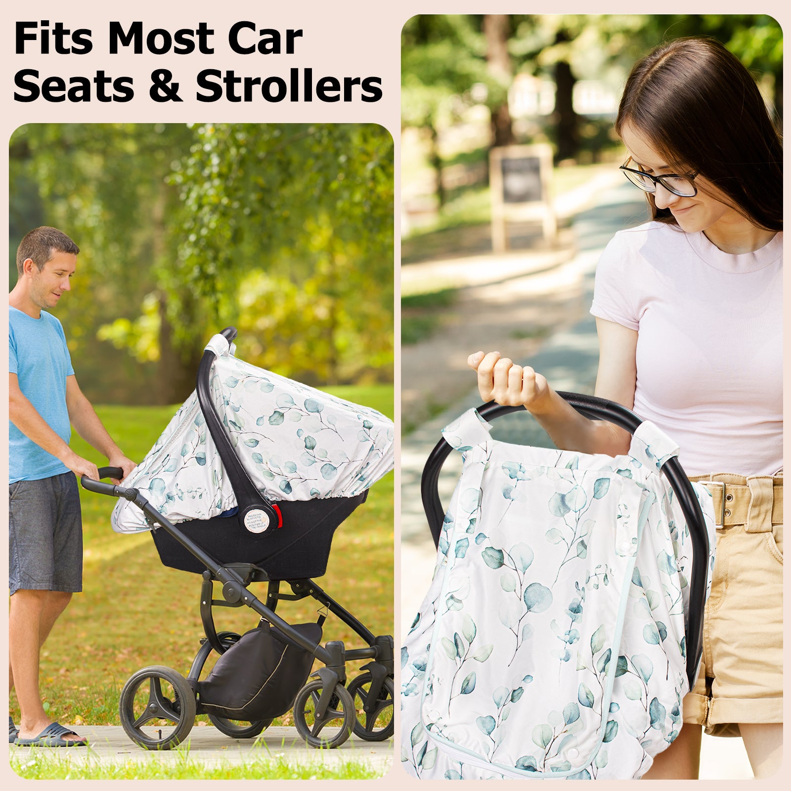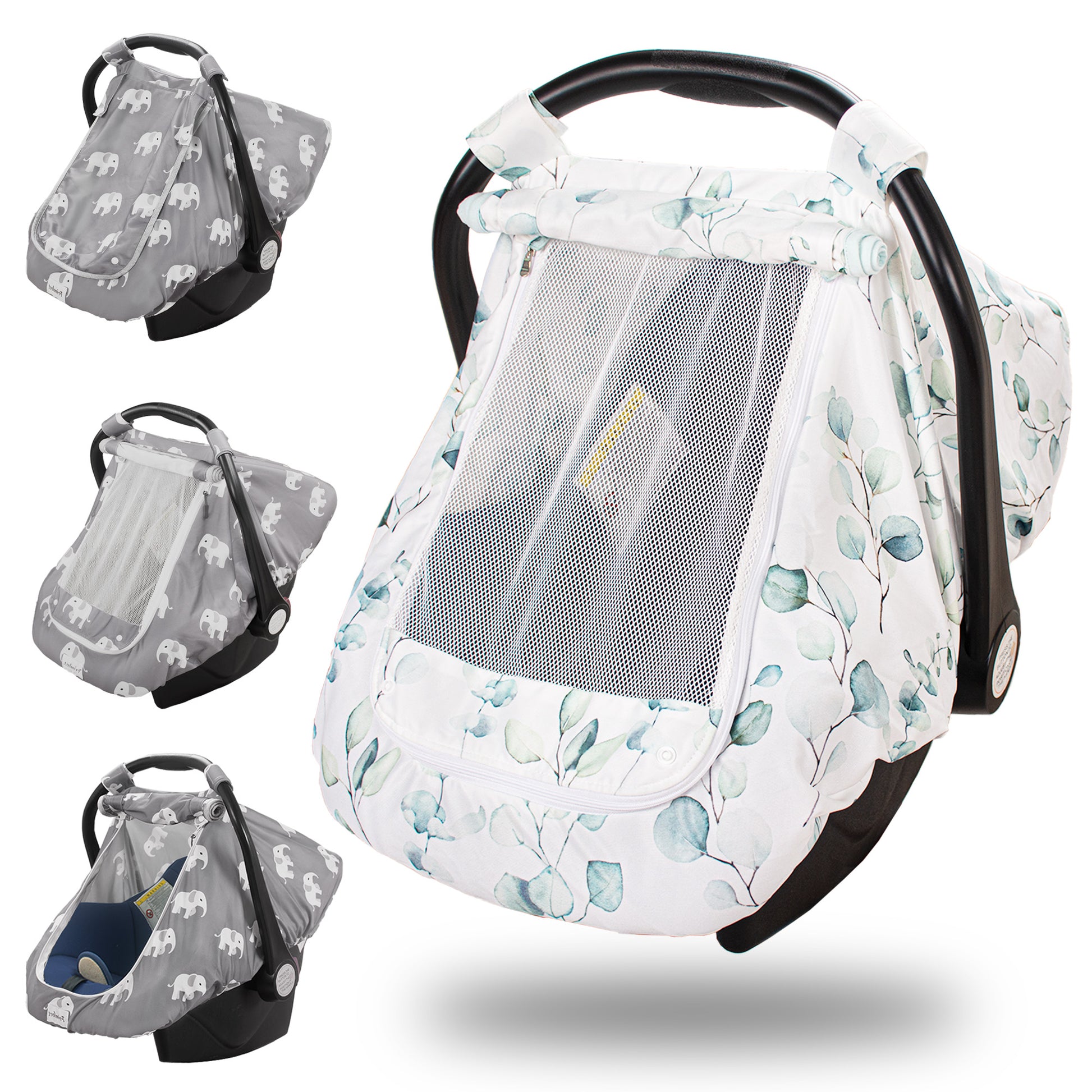 Beavtaens Car Seat Covers for Babies, Large Window Baby Car Seat Covers, Stretchy Carseat Canopy with Breathable Peekaboo, Kick-Proof & Windproof Infant Carseat Cover for Boys Girls (Leaves)